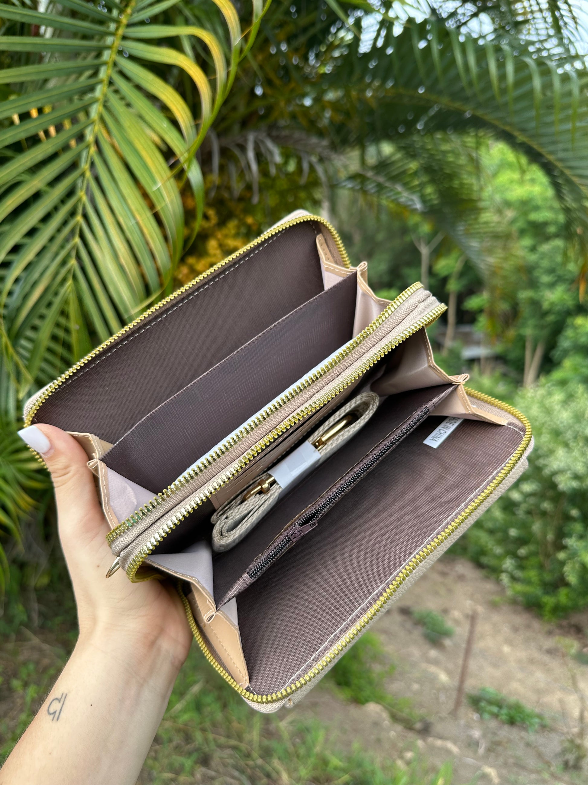 Wallet con 3 divisiones. Cuenta con espacio para tarjetas, billetes, menudo y un bolsillo para el teléfono celular.